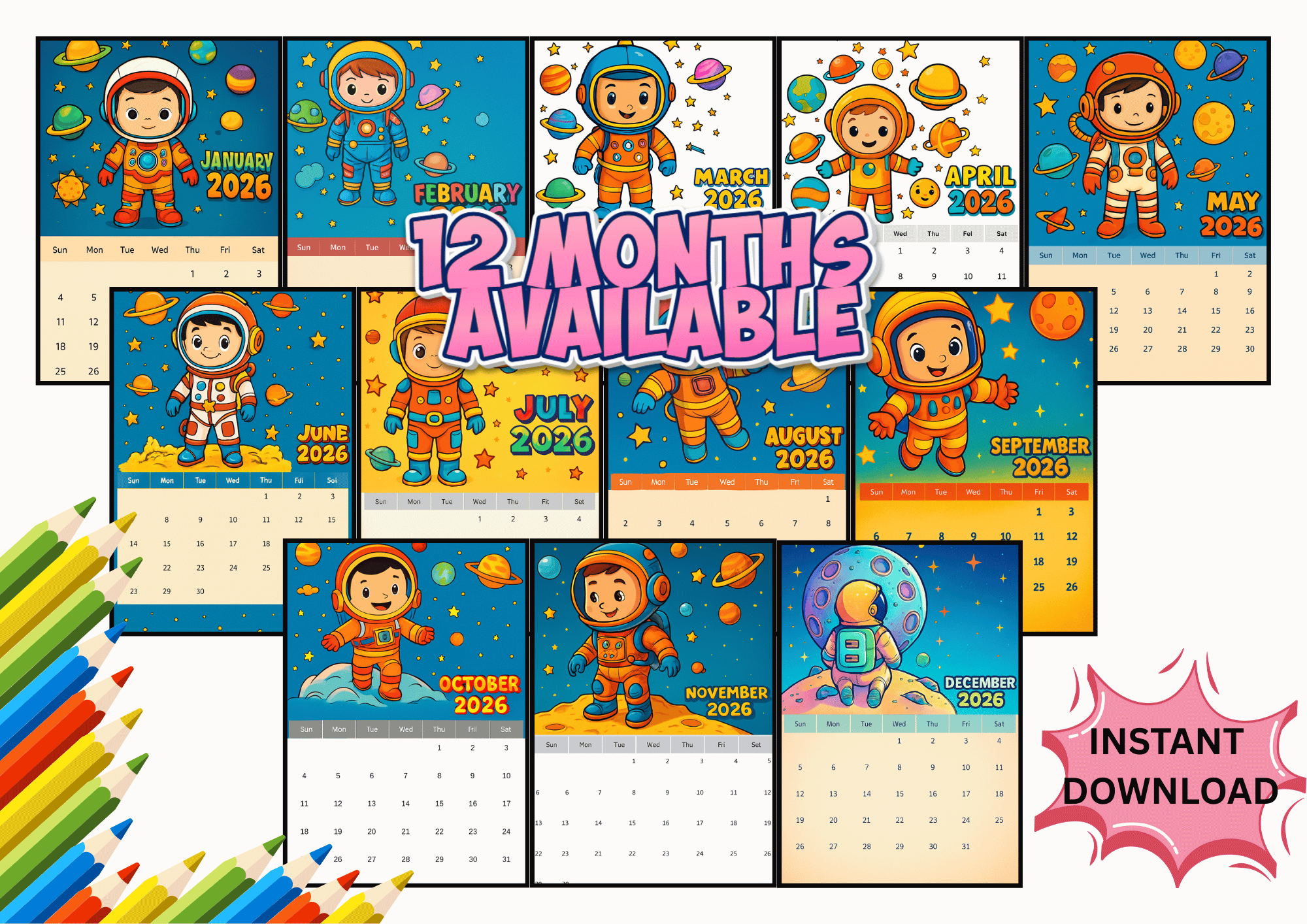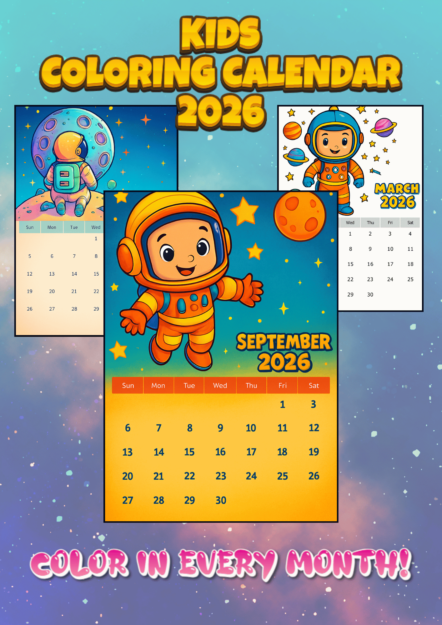 • Space / outer-space theme characters (fun, cute & kid-friendly)