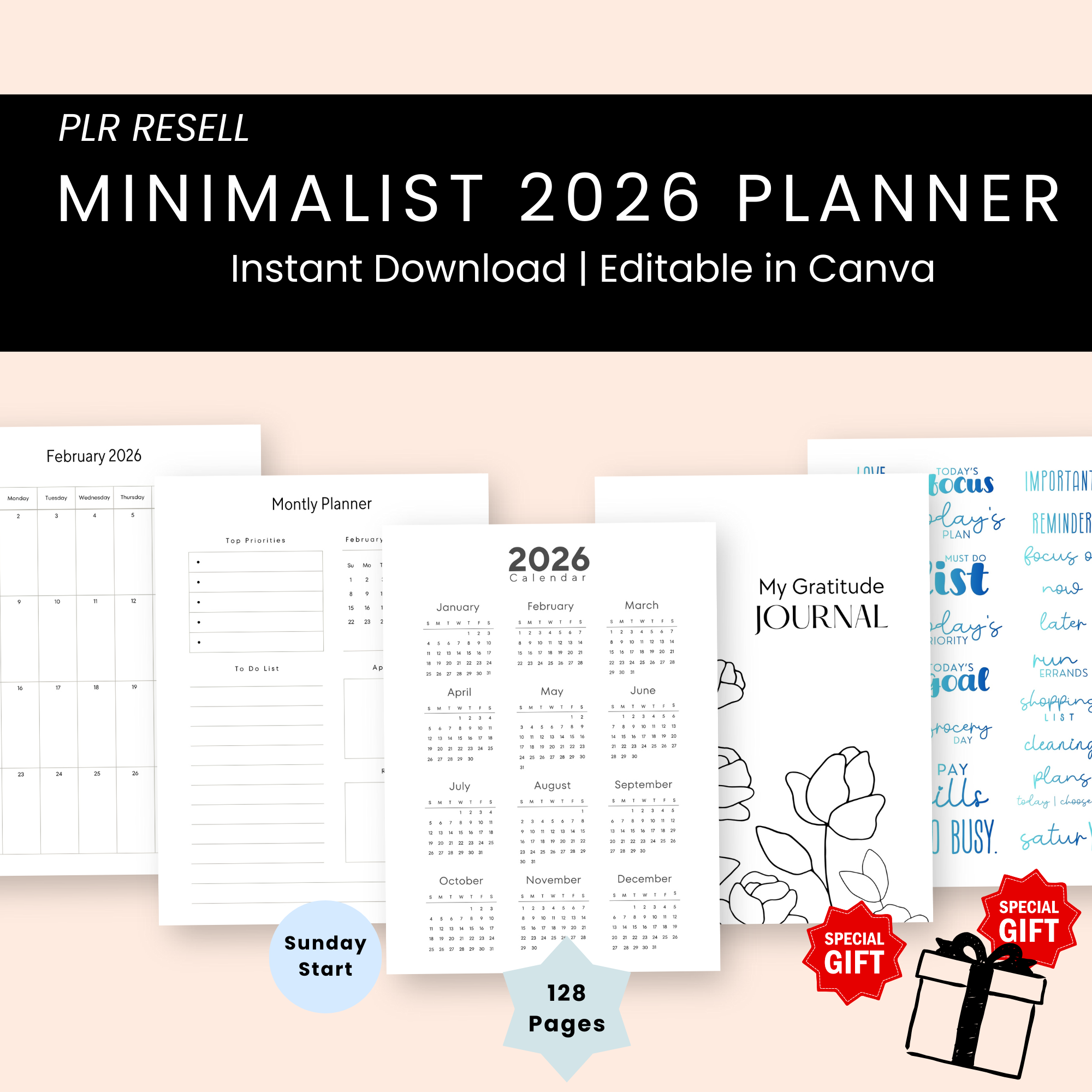 PLR 2026 Monthly & Weekly Planner – Sunday Start