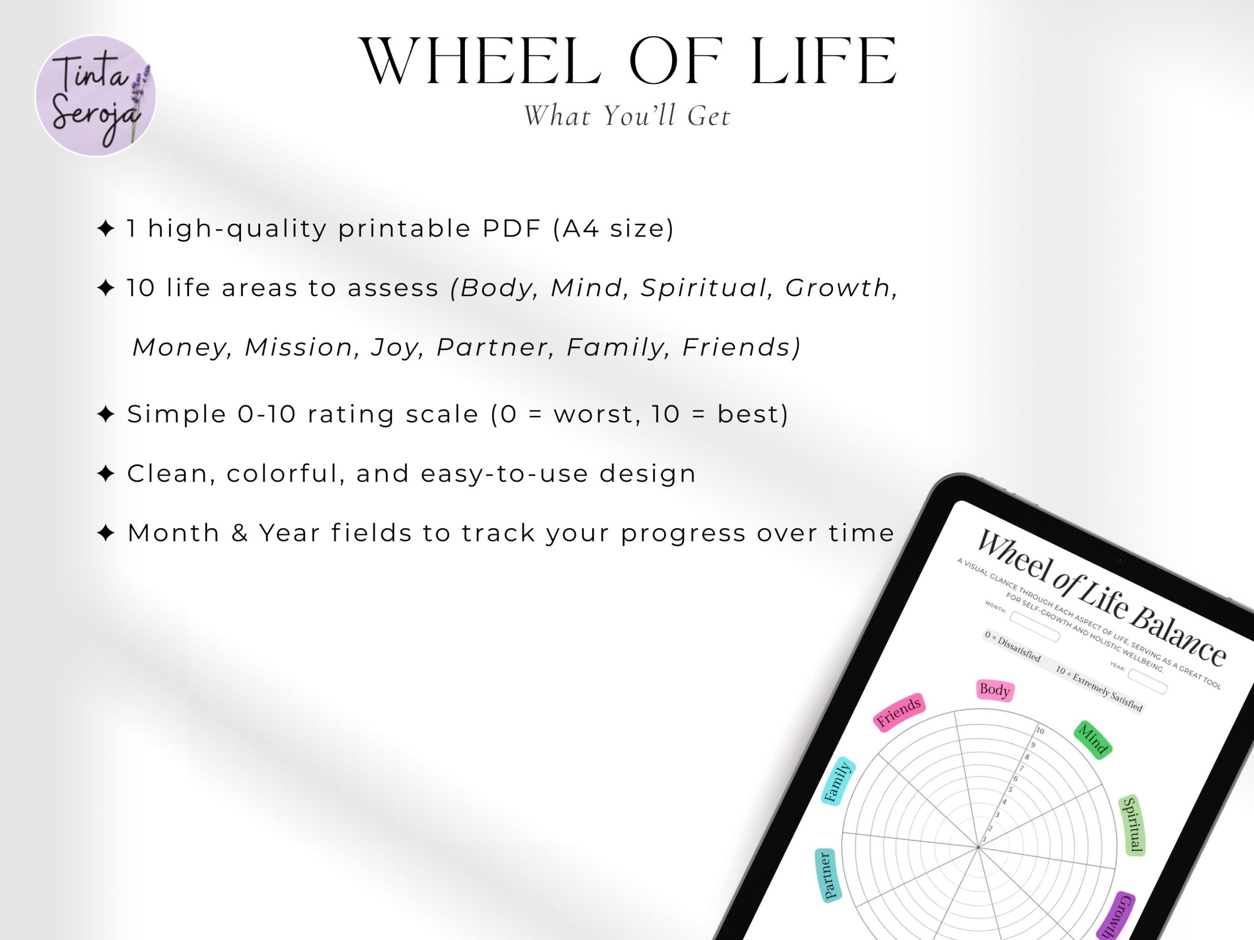 A powerful visual self-assessment tool that helps you rate your satisfaction across 10 essential life areas: